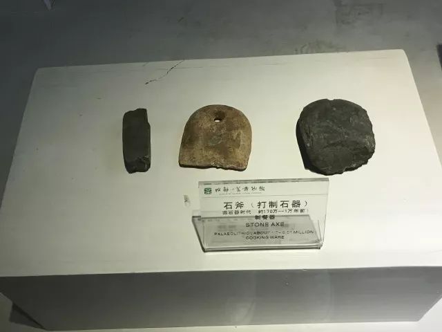 川菜博物馆典藏馆的进门左手之处,三件样式清晰可见大小却不引人注目的石器陈列在灯光之下,算不上宝物,却见证了历史。石器早在170万年前——1万前的旧石器时代,人们就学会了用石头打制成不同的生活工具,石斧,一种打制石器做的制餐器。时间穿越回170万年前。地球上一旦有了人,便有了进食,大自然的生存法则使得人从四肢着地爬行进化到靠脚行走,生存能力逐渐体现,学会使用工具,发现火苗的用处。一群裹着兽皮的远古人,打猎归来,群居生活使得大家围坐在一起分食,石斧,便派上了用场。