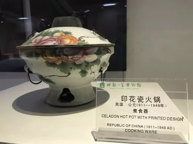 川菜博物馆里的几件火锅藏品正代表了这样一个饮食文化的鼎盛时期。而火锅早在三国时代便有铜制火锅的记载,但在当时并不流行;而到了南北朝时代人们逐渐熟悉这一烹饪手法,北宋时冬季火锅应市;到了清朝,火锅成为宫廷冬季佳肴;清末民初,全国形成了十几种各具特色的火锅。四川火锅源起重庆,清末民初时,四川多会馆,又因地势原因潮湿,麻辣火锅祛湿驱寒,这一饮食形式并流行起来一发不可收拾。